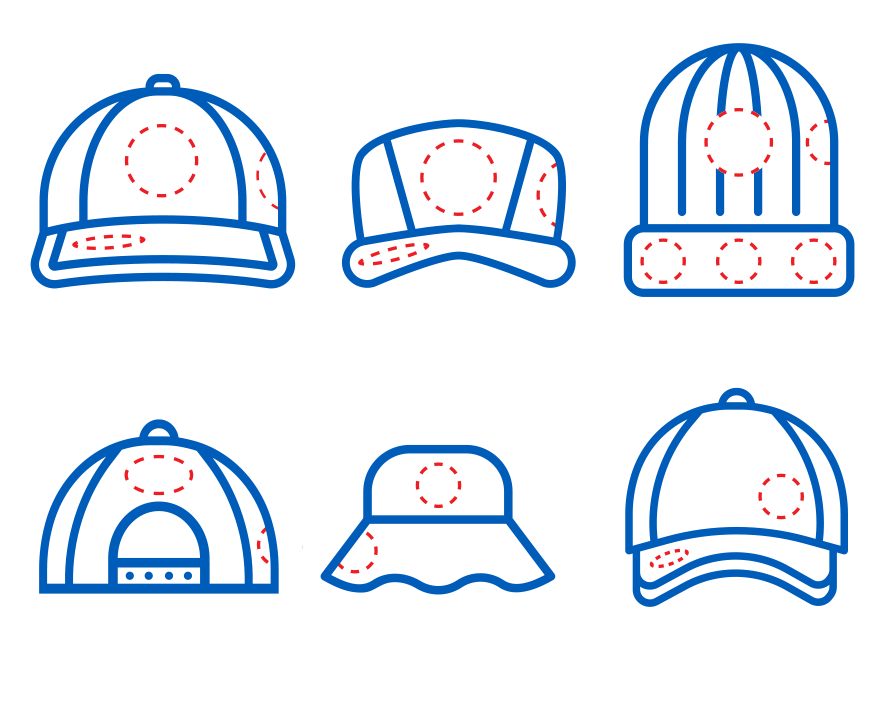 ・帽子の前面・側面・背面まで幅広くプリント可能
